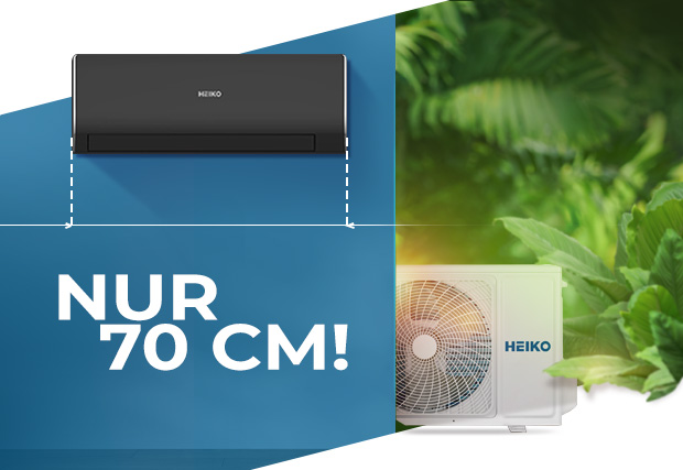 Die Klimaanlage HEIKO ROSA Black zeichnet sich durch eine Breite von nur 70 cm aus, wodurch sie sich ideal für kleinere Räume eignet. Das moderne, schlanke Gehäuse erleichtert die Montage und passt zu jeder Inneneinrichtung.
