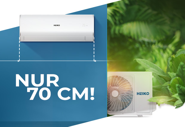 Die Klimaanlage HEIKO ROSA White zeichnet sich durch eine Breite von nur 70 cm aus, wodurch sie sich ideal für kleinere Räume eignet. Das moderne, schlanke Gehäuse erleichtert die Montage und passt zu jeder Inneneinrichtung.