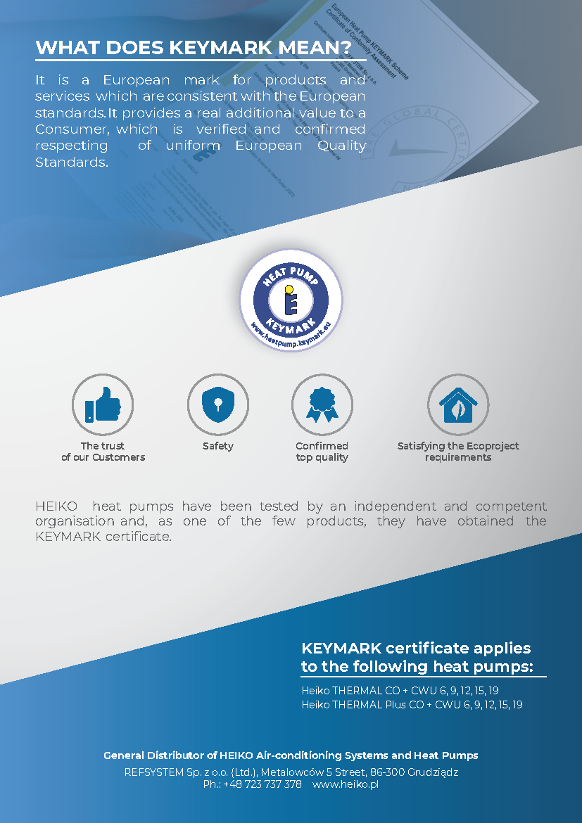 Die Wärmepumpen HEIKO THERMAL und THERMAL Plus erfüllen hohe Qualitätsstandards und haben das renommierte KEYMARK-Zertifikat erhalten.