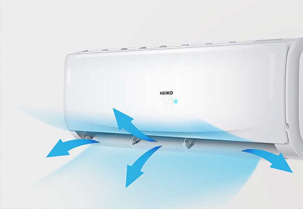 The airflow is automatically directed upwards during cooling and downwards during heating, ensuring even distribution without direct airflow.